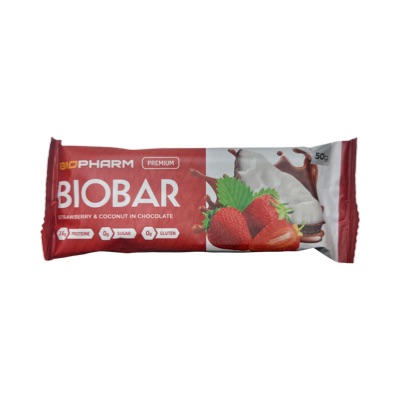 Батончик "Биобар" клубника кокос в шоколаде 50г