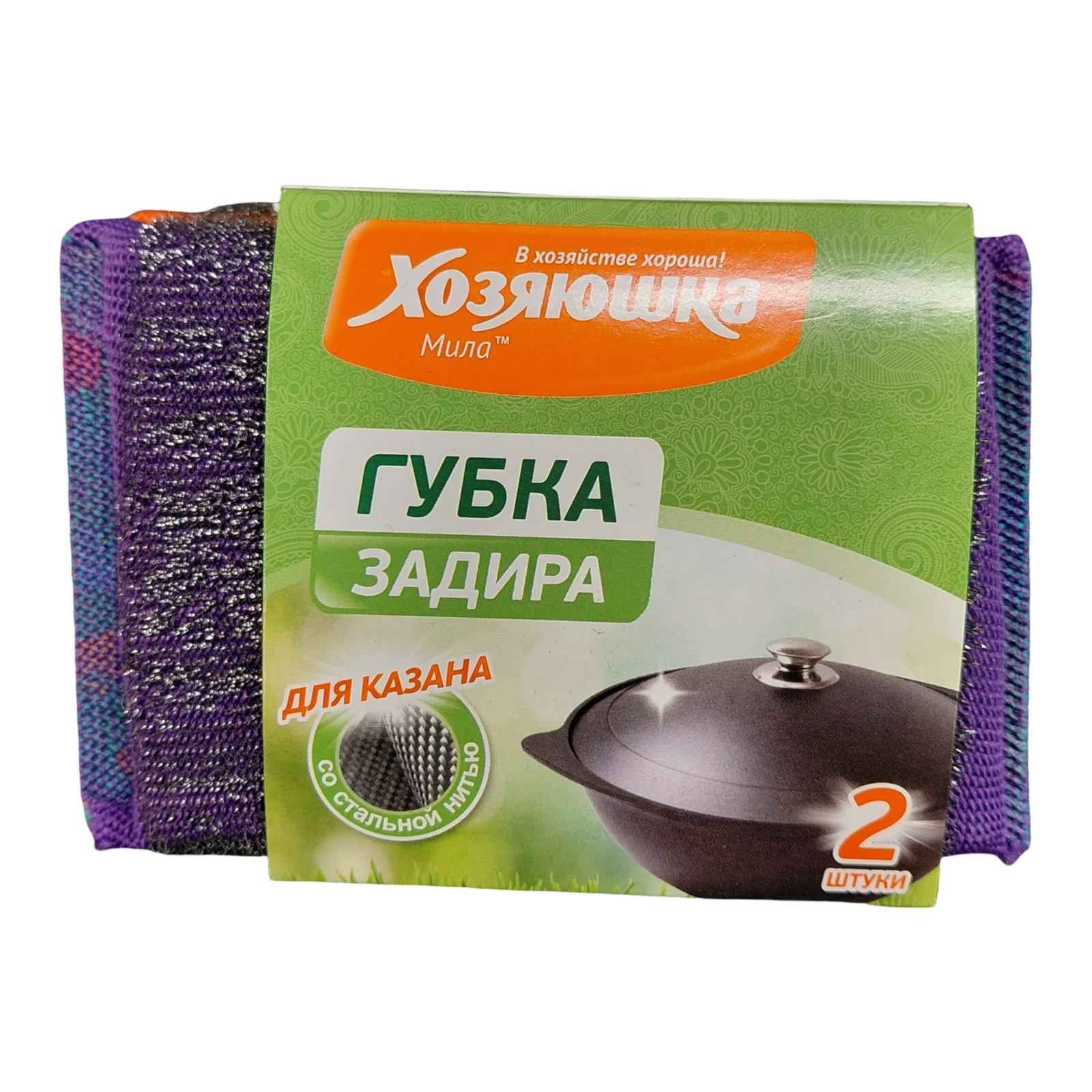Губка для посуды Задира "Хозяюшка Мила" со стальной нитью 2шт