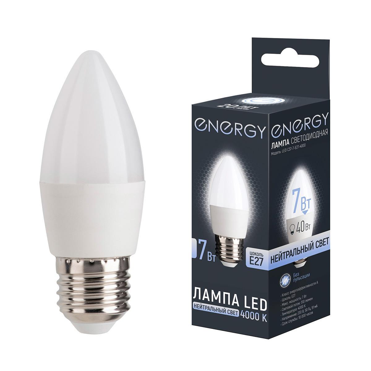 Лампа светодиодная энерджи ЛЕД С-37-7-Е27-4000