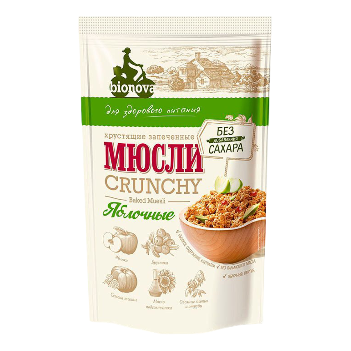 Мюсли BIONOVA хрустящие запеченные яблочные 400г