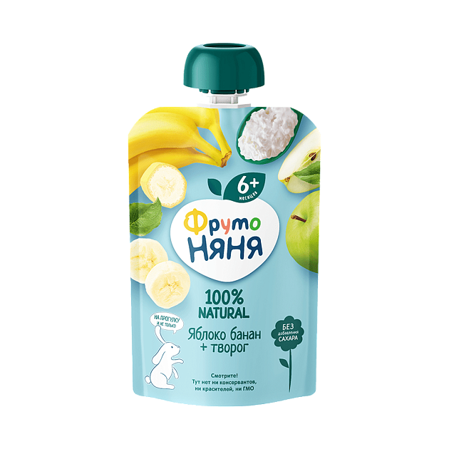 Пюре ФРУТО НЯНЯ яблоко-банан с творогом 90г