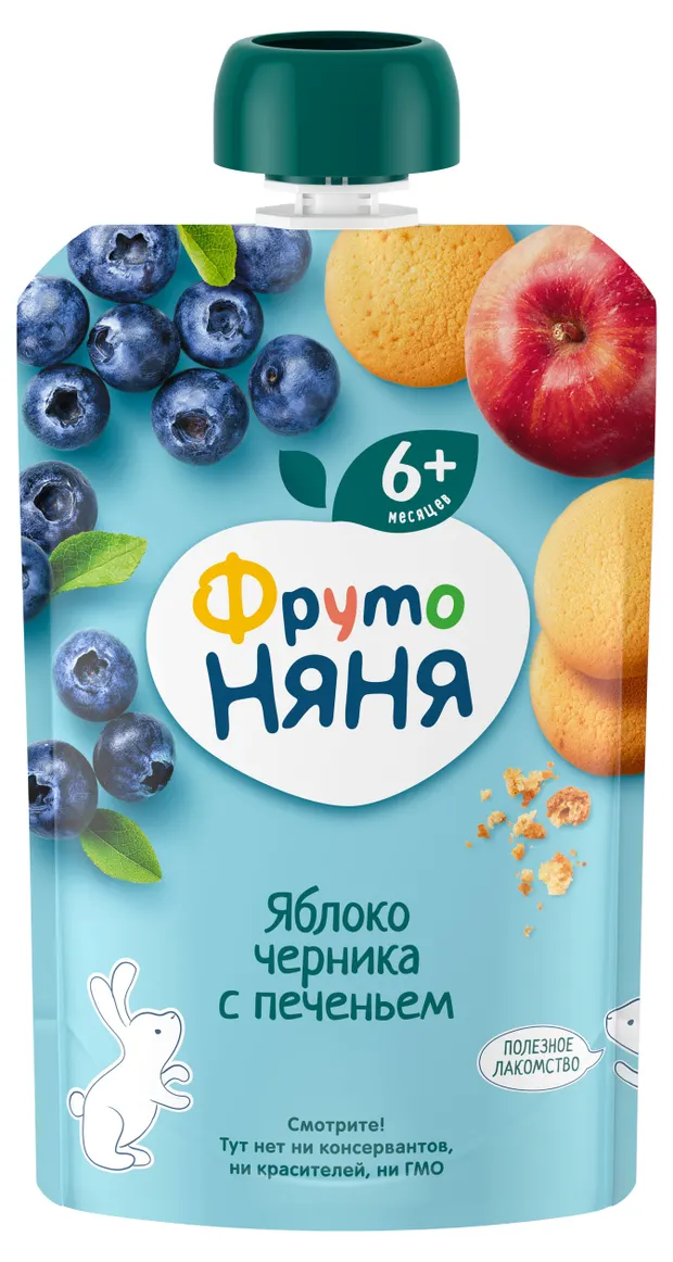 Пюре ФРУТО НЯНЯ яблоко черника с печеньем 90г
