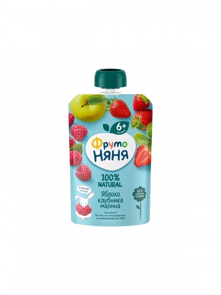 Пюре ФРУТО НЯНЯ яблоко-малина-клубника 90г