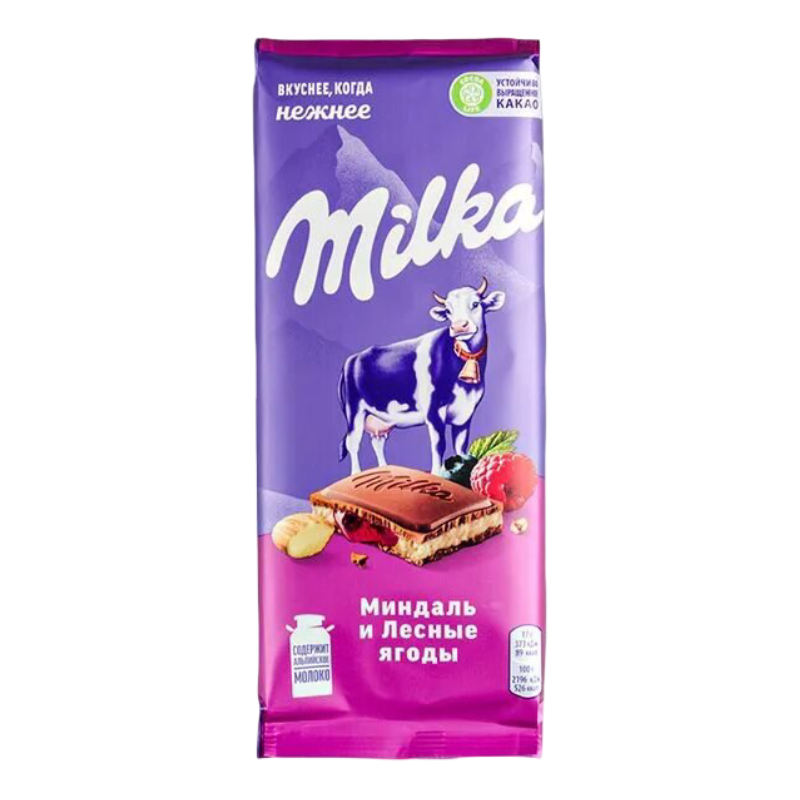 Шоколад "Милка" миндаль и лесные ягоды 80гр
