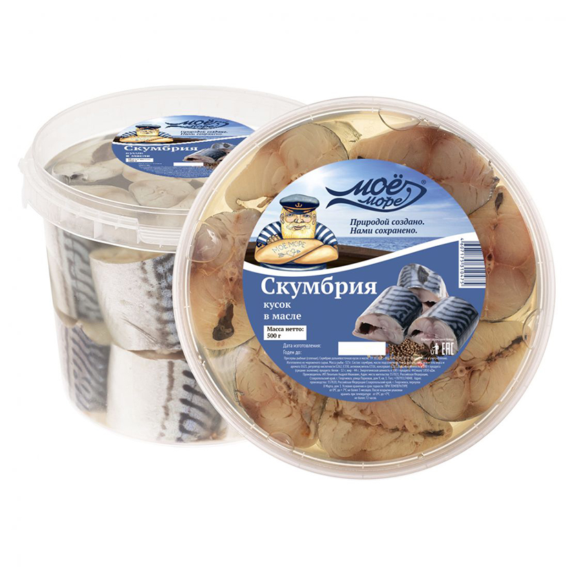 Скумбрия в масле (кусок) "Моё море" 500гр