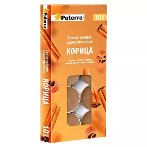 Свечи чайные в гильзе ароматом корицы "Патерра" 10шт