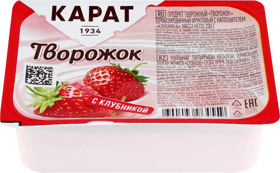 Творожок "Карат" с клубникой 230г